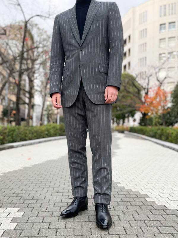 styling-3: グレーのストライプスーツ×ストレートチップ