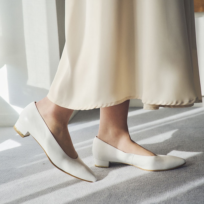2.5cm高ヒールのウェディングパンプス。
