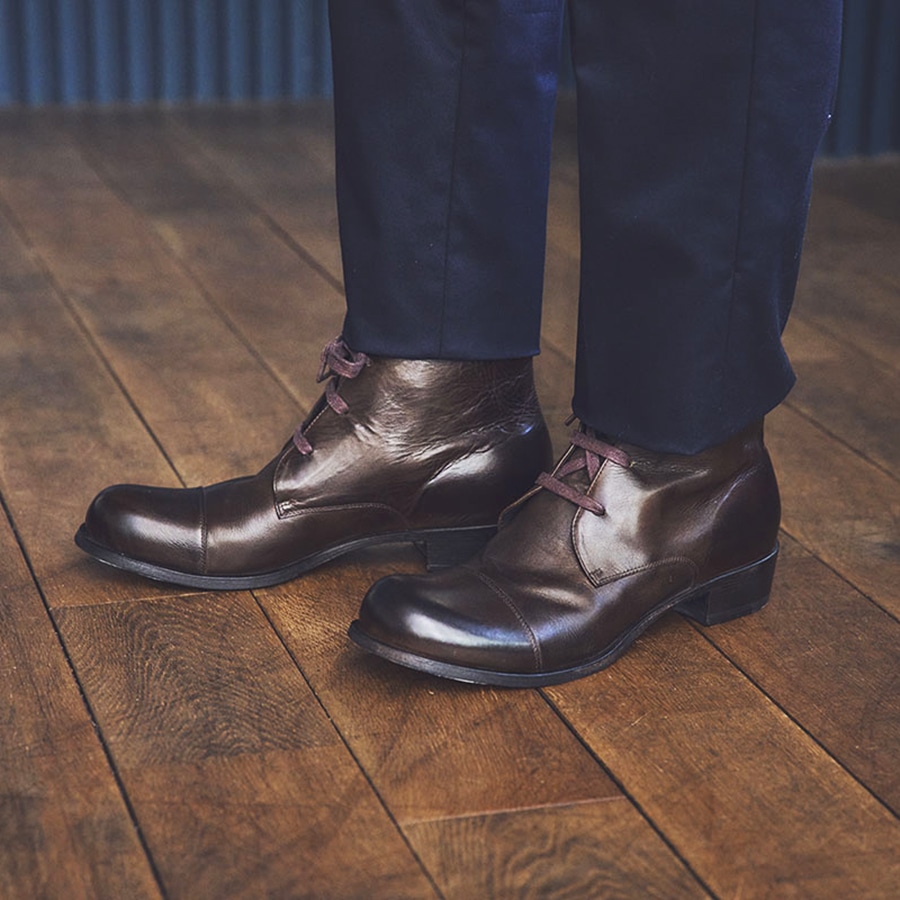 グレーカラーのアウトソールを、革と合成樹脂のメリーソール構造で再現しています。
