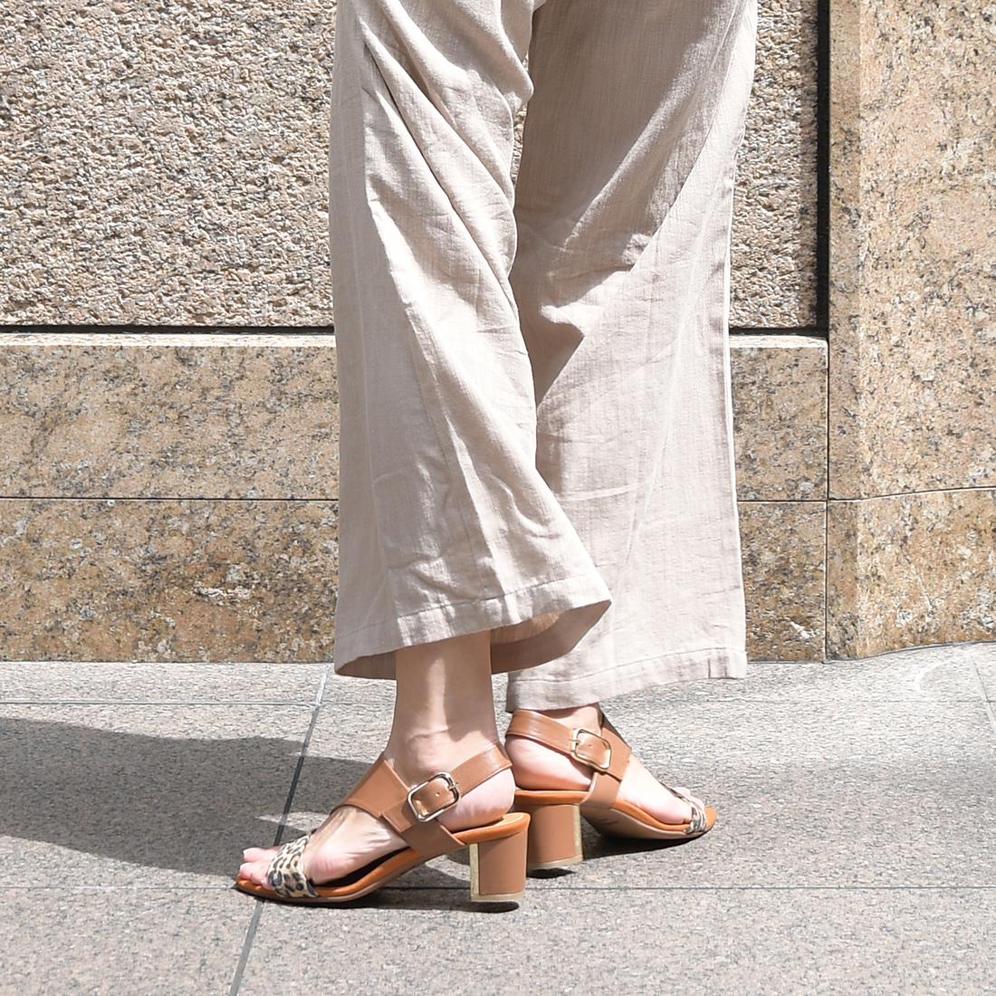 レオパード柄や金具をあしらったデザインヒールは存在感もあり、シーズンコーディネートのポイントになります。