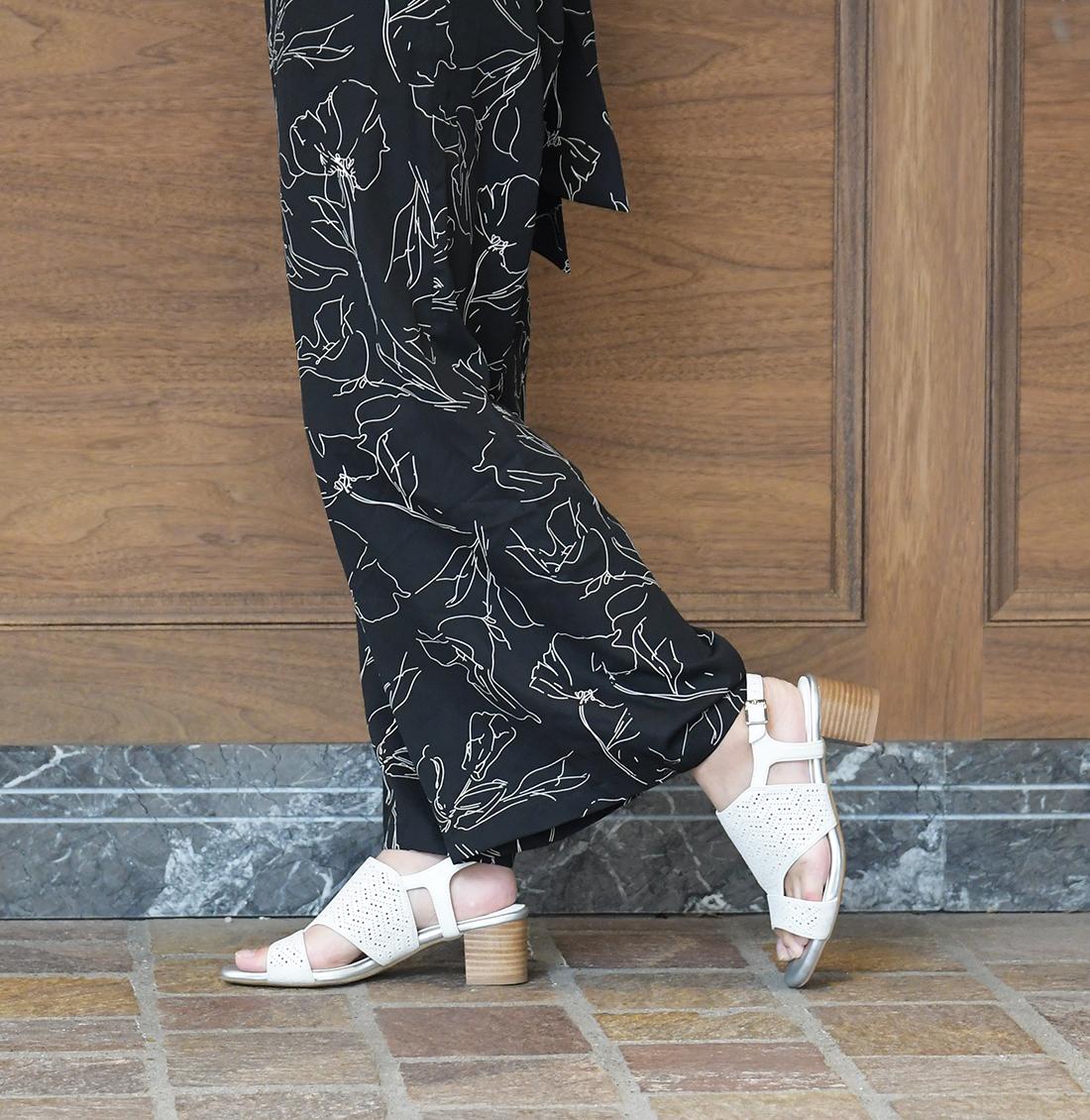 深めの甲で足を支え安定感のあるヒールが快適な歩行をサポートします。