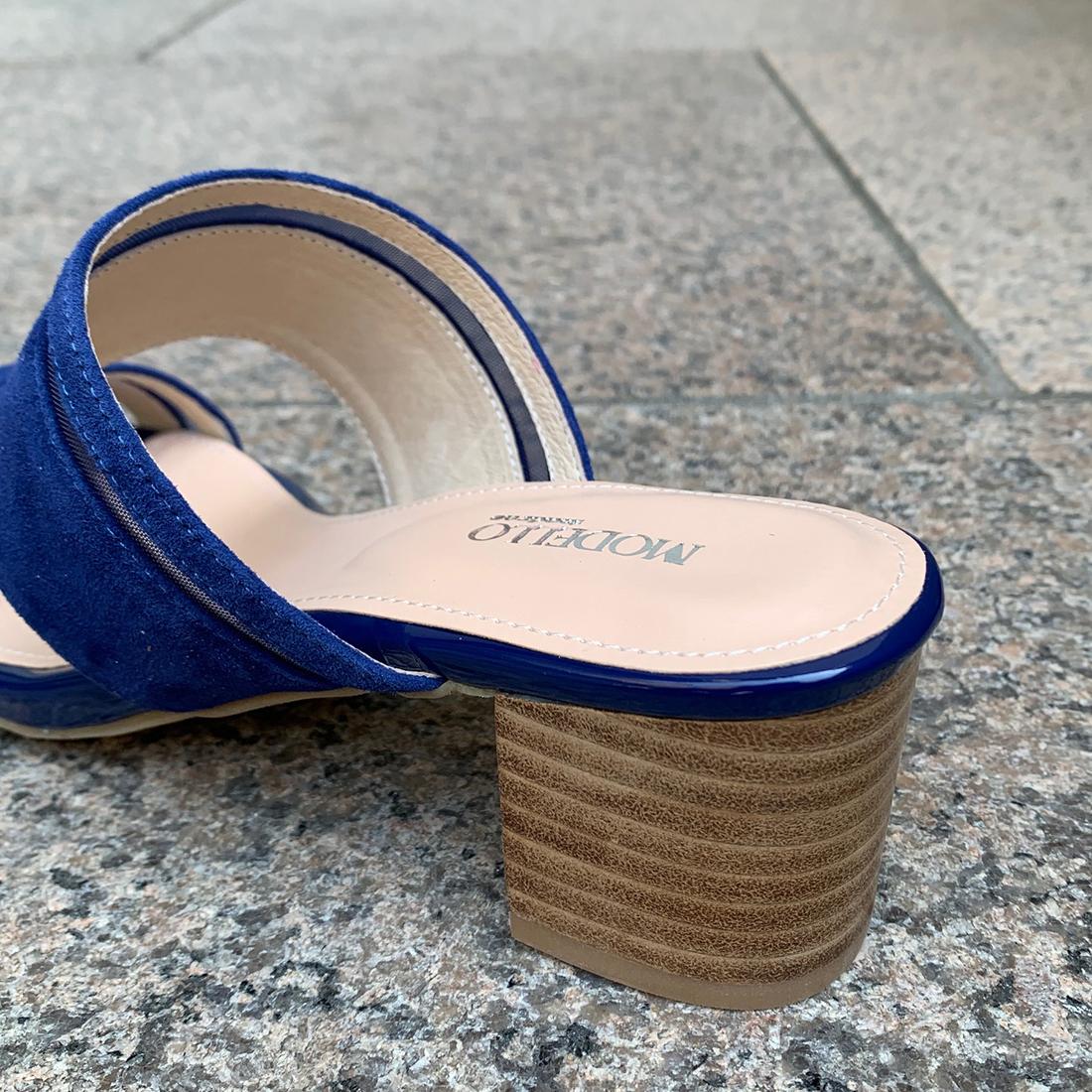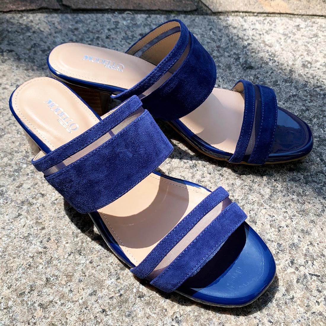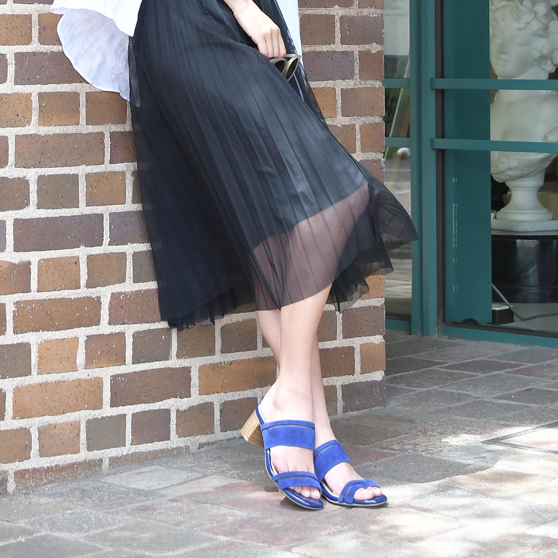 ダブルベルトでしっかりホールドし前滑りを抑えた履きやすいミュール。 -
