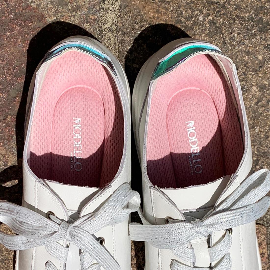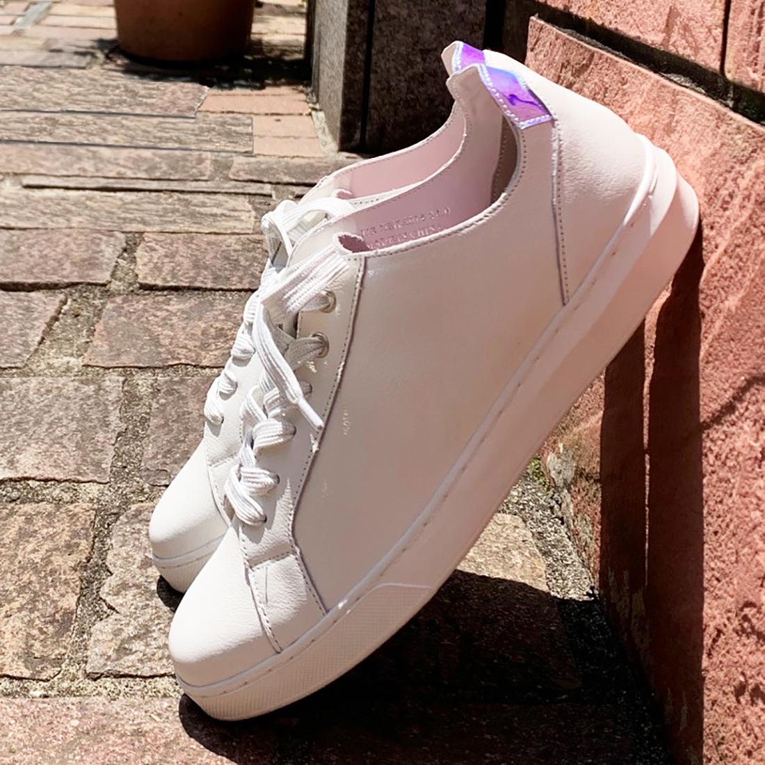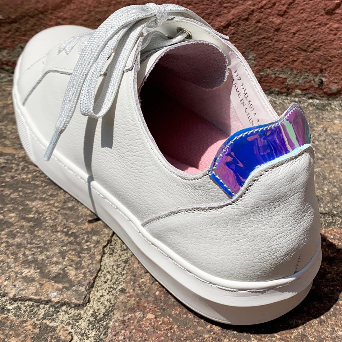 シンプルなデザインの踵にはトレンドのホログラムをポイントに!