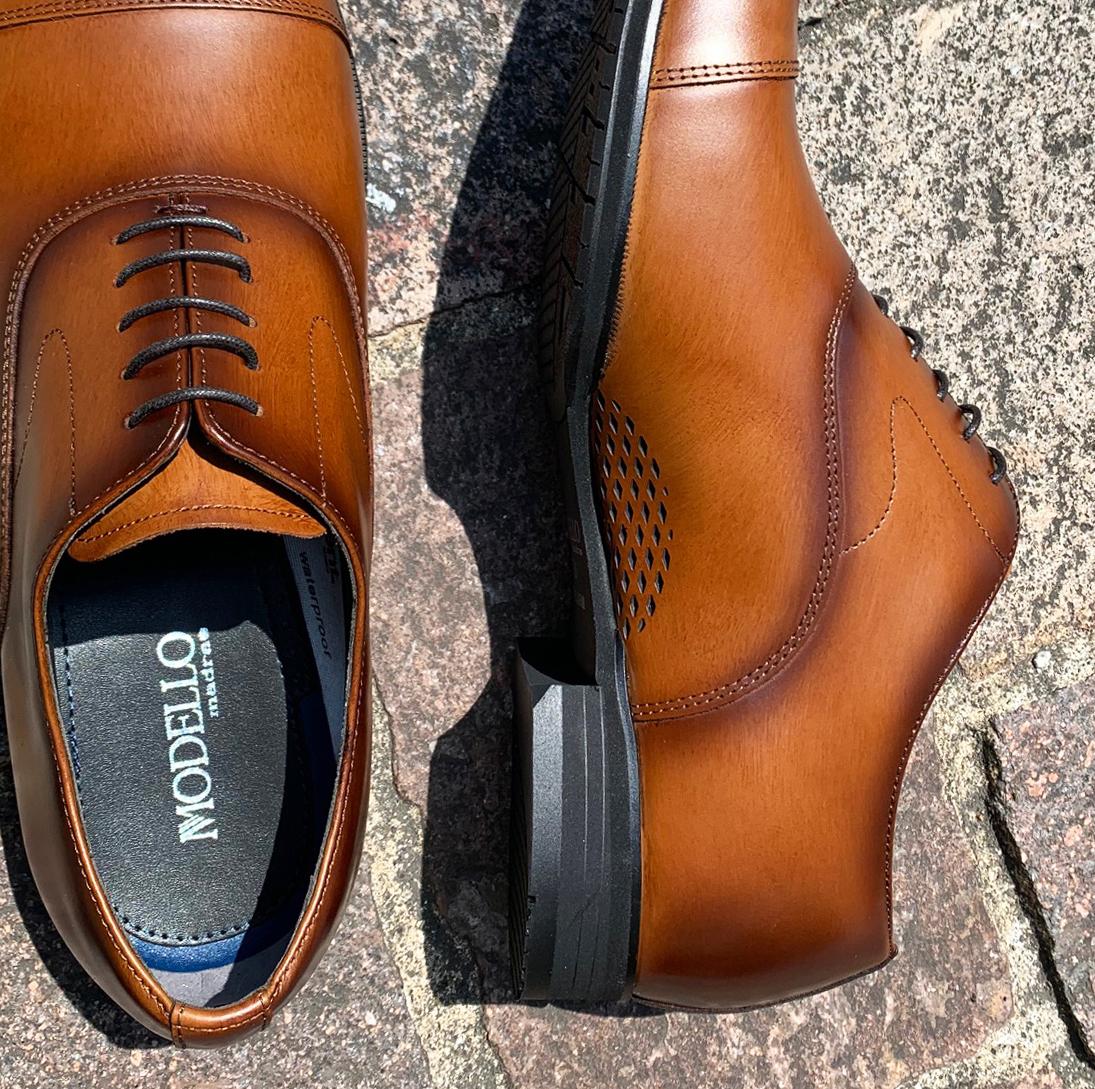 最も需要の高いストレートチップ内羽根をMODELLOこだわりのアンティーク仕上げで、深みあるLBRの仕上げに施し、晴雨兼用に見えない見た目のシューズ。 -