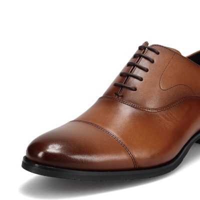 シューズはフォーマル度の高いストレートチップでありながらブラウンの色合いがおしゃれなのでスーツのスタイルを格上げしてくれます。
