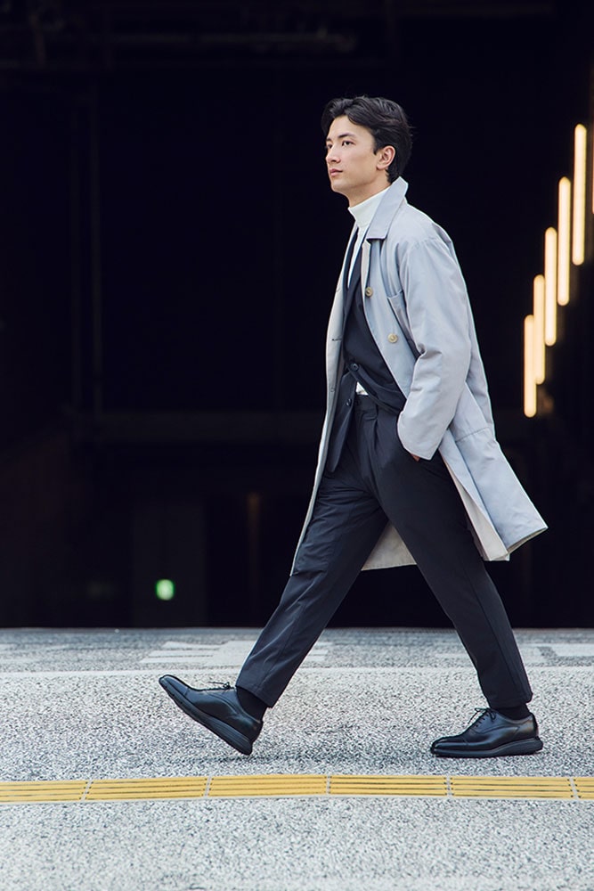 スポーツ感のあるデザインでありながらゴアテックスのレザースニーカーを合わせることで落ち着いた雰囲気も出せます。