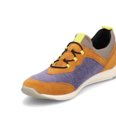 異素材合わせのアッパーのデザインとプラットフォームソールでトレンド感をばっちり演出します。