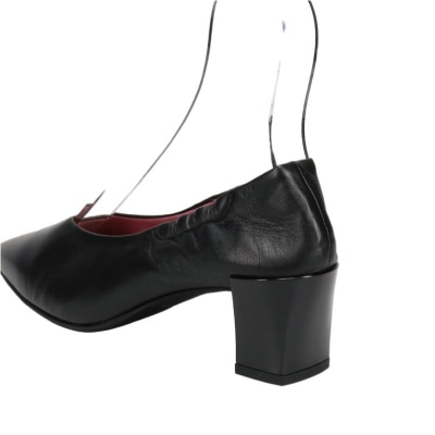 シャープな印象を与えるパンプスですが甲に国産シープレザーを惜しみなく使っているのでストレスフリーの履き心地。