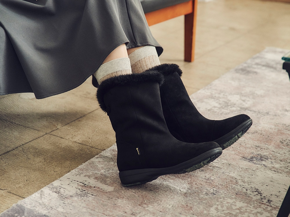 防水・透湿機能に優れたGORE-TEXファブリクスを使用したミドルブーツです。雪の日も水分の侵入をしっかりと防ぎます。靴内部の蒸れた空気は外へ逃がすので、足元は常にドライで快適。