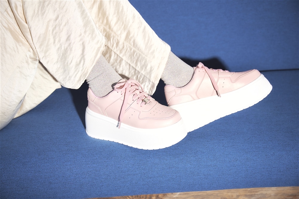 やわらかなカラーがコーディネートになじみつつ、トレンド感のある足元を演出します。