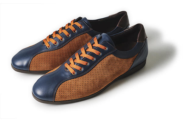 パンチング加工されたキャメルのスエードとネイビースムースレザーを採用することで、とても上品なデザインにまとまっています。これぞ大人の足元に一番似合う、代表例のひとつ!