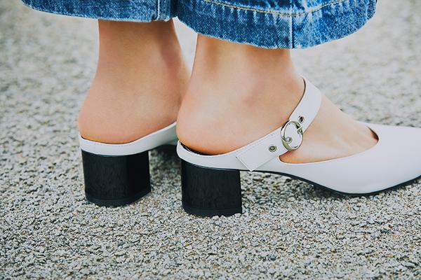 ベルトミュールを主役にした レトロムードなモードスタイル