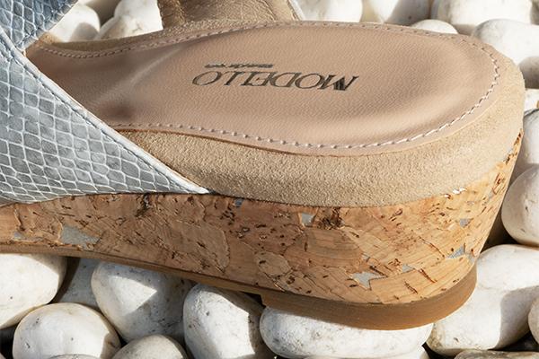 程よい高さのヒールにはコルクが巻かれ、夏を演出してくれます。