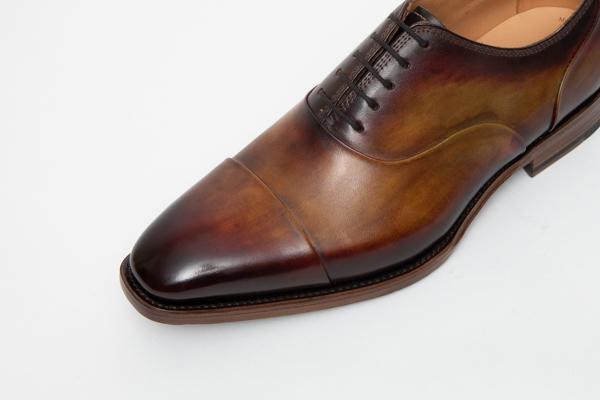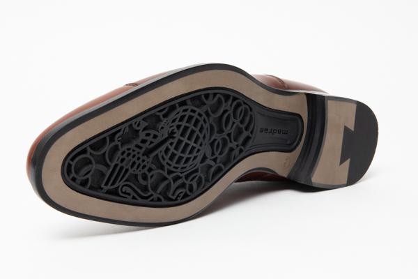マドラス社100周年を記念し、究極の仕上と履き心地を追求した100足限定記念モデル。オランダ産キップ原皮の素上げをフランス染料サフィールによるパティーヌ仕上で染め上げました。ボロネーゼ+ブラークラピッド製法。踏付け部分にはOrthoLiteとコルクを内装しました。革底材には時間をかけて1/3程に収縮させ、非常に柔軟で目の詰まった希少なイタリア製ナチュラルシュリンク: RAGGRINZITO(ラグリンズィート)を使用。