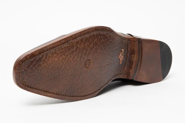 時間をかけて1/3程に収縮させ、非常に柔軟で目の詰まった希少なイタリア製ナチュラルシュリンクを革底材に使用。