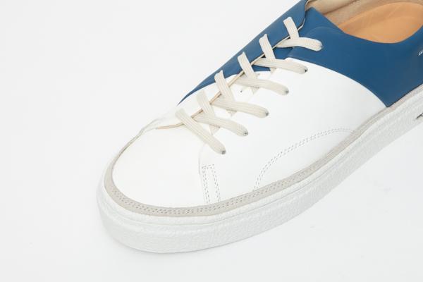 足元を鮮やかに彩ってくれるバイカラー・コート・スニーカー“NEON”。ステッチレスなディティールは、他にないオリジナリティ溢れるデザイン。ソールには軽量で屈曲性の良い軽量比重ラバーを使用。靴内部には高反発クッションと、独自開発の抗ウイルス・制菌・抗カビ・防臭・消臭機能を併せ持つ新素材“NEW FINE Plus” を使用。さらに、踵側面にはmadrasライオンエンブレムがワンポイントで輝きます。