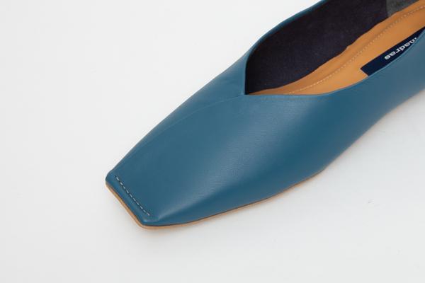 シルエットにこだわったモード・バレエシューズ。トレンドのスクエア・トゥの爪先にステッチ・ダウンをほどこしました。超ソフトタッチの国産羊革を使用し、足当たりの良さを実現。深めのアシンメトリーVカットが足を優しく包み込みます。カラー展開が豊富なのでどんなスタイルにも合わせていただけます。
