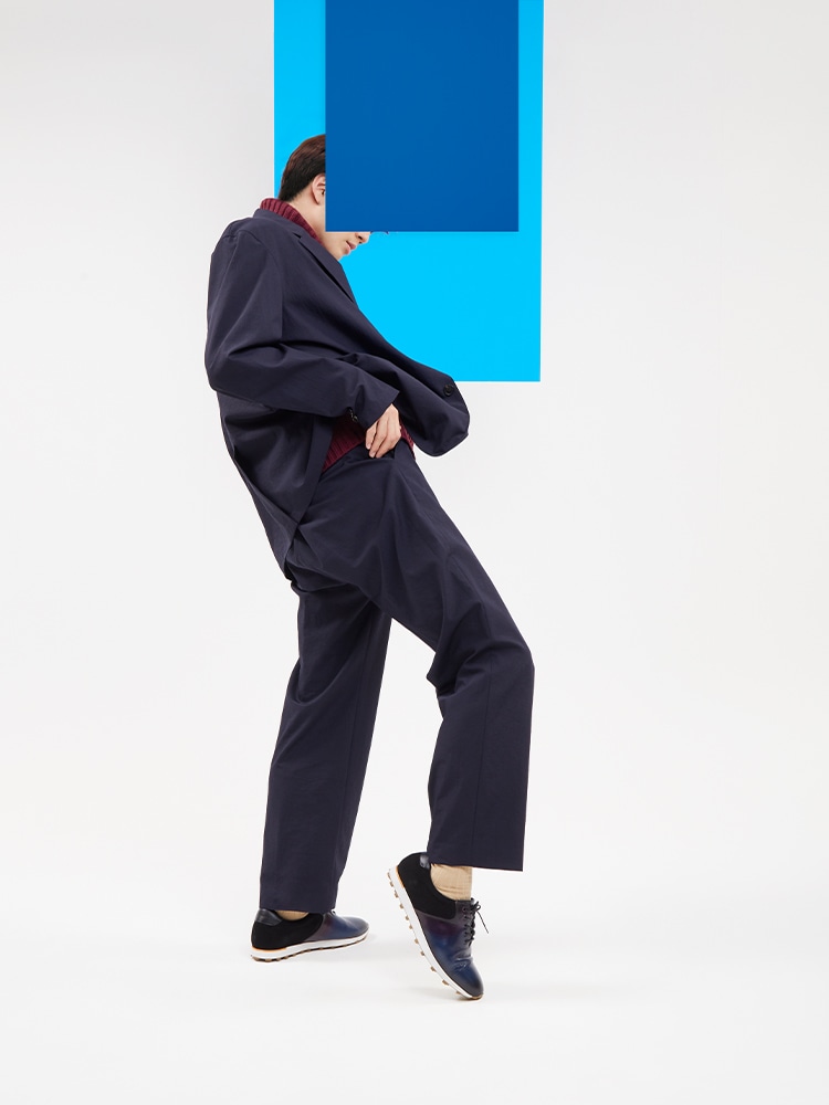 クラストレザーを染め上げて表情を出しました。ソフトさと軽量さにこだわりながら、安定した履き心地と耐久性のバランスにこだわったレザースニーカー。