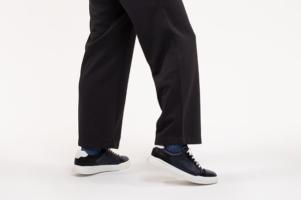 脱ぎ履きしやすい口回りのゴム入り。インソールのクッション性や履き口のパッドはソフト感にこだわりました。