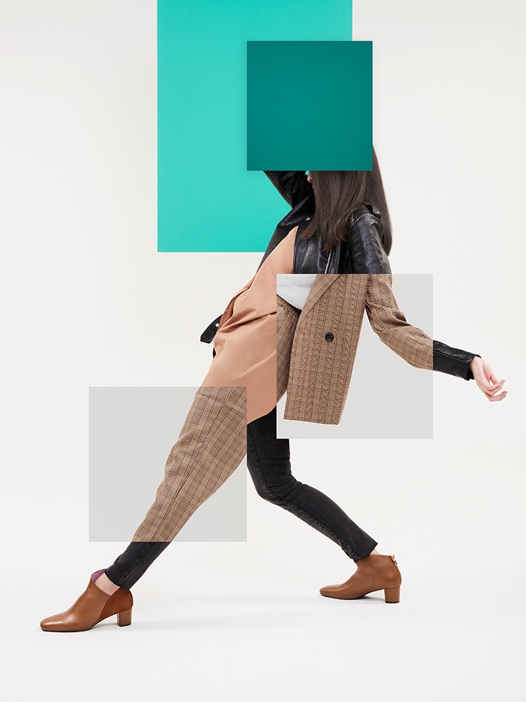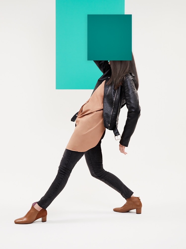 特徴のあるカットラインがエレガントな印象のショートブーツ。