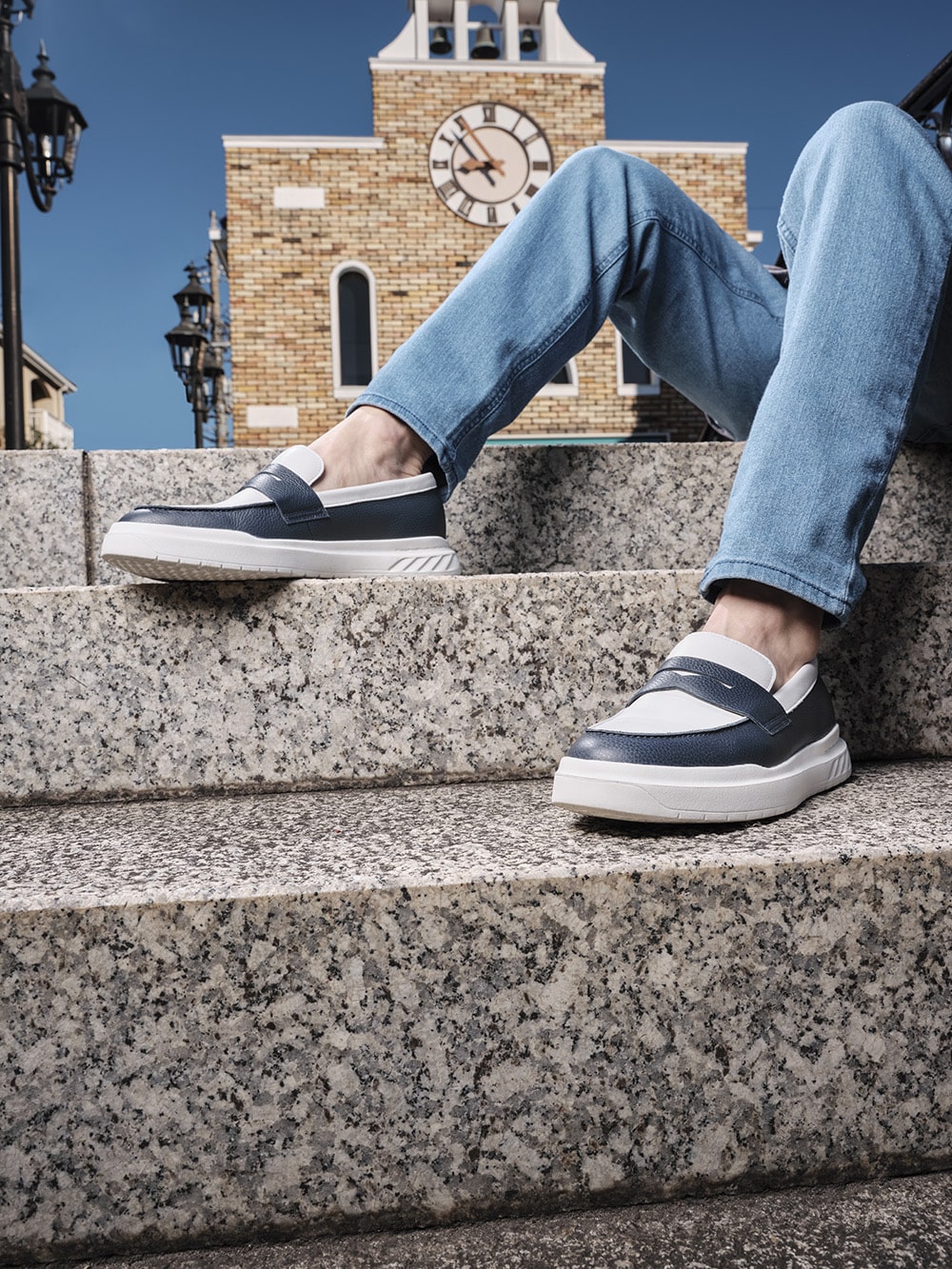 サドルのデザインと厚いソールが特徴的な コインローファー