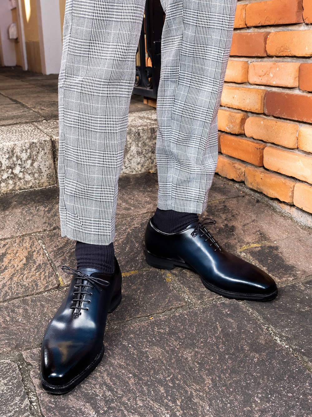 一枚革で仕立て、美麗な木型を際立たせたホールカットシューズ。