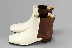 マドラスファクトリー設計のバイカラーショートブーツ。