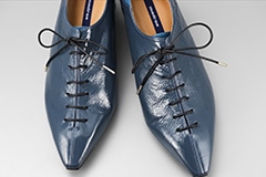 シャープな印象を与えるプチスクエア・トゥのレースアップパンプスです。
