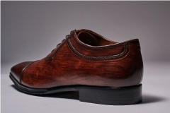 スタイリッシュなスクエアーの木型にカーフのヌメ革を使用し、熟練職人が1足ずつ手作業で塗り重ねて色を表現した、表情豊かな仕上がりになっています。