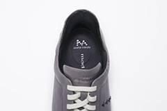 高級感を讃えるしっとりとした光沢、そして柔らかな肌当たりが魅力の上質なシープレザーで仕立てられた、まさに大人のためのスニーカーです。