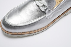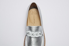 煌めくシルバーカラーと チェーン装飾がアクセントの ハンサムなローファー