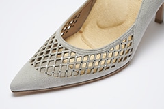 流麗なプロポーションと精巧なカットワークによるメッシュデザインで優雅な足元を演出するパンプス。