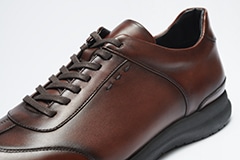 シンプルでミニマルなデザインと、素材の高級感がマッチしたレザースニーカー