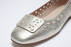 涼しげなカットワークのバックル付きスクエアバレエシューズ
