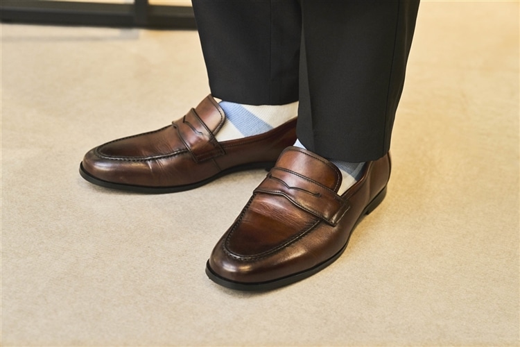 マッケイ製法で作られたパティーヌ仕上げコインローファー。