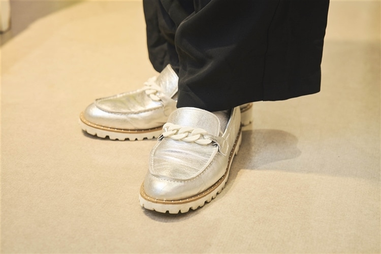 五味「普段はスニーカーで仕事をしていることが多いですが、ローファーのデザインに惹かれ選択。