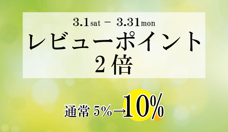 オンラインショップ・直営店でご利用いただけるポイントを通常の2倍プレゼントいたします。