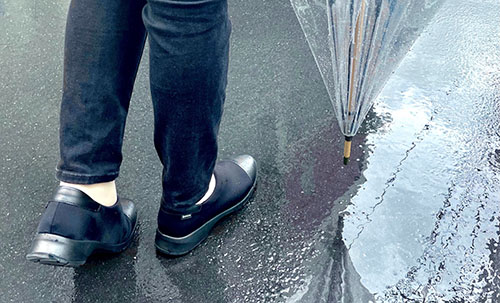 このシューズはあくまでちょっとした雨やお出かけ先で急に雨に降られてしまっても大丈夫なように作られているだけであって、
