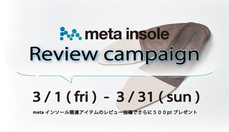 お買い上げいただいたmetaインソール、metaインソール搭載シューズのレビューを投稿していただくと、