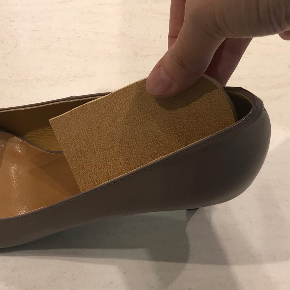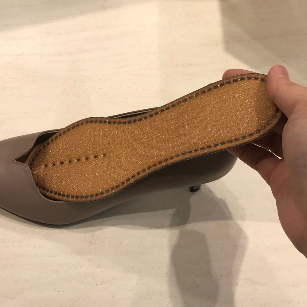 - ・かかと部分用のハーフインソールを入れることにより、足の位置が上がって履き口に触れる足の部分が変わり痛い部分に当たらないようにすることができます。