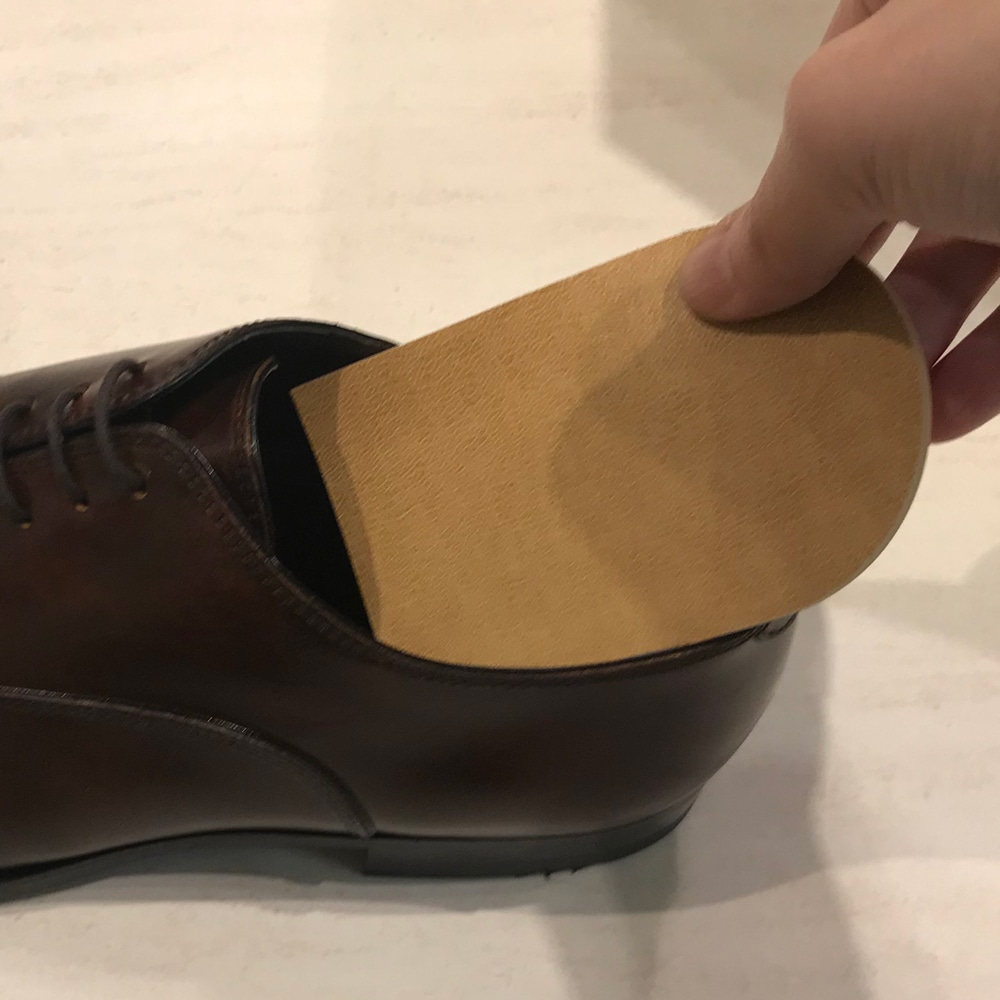靴のフィッティングを正しく判断するためには、足を靴に入れたあと、かかとをしっかり靴の内側に密着させた状態で各部分のフィット感を確認することが基本です。