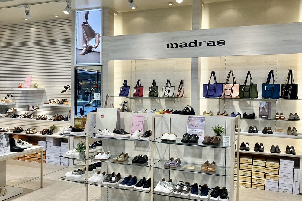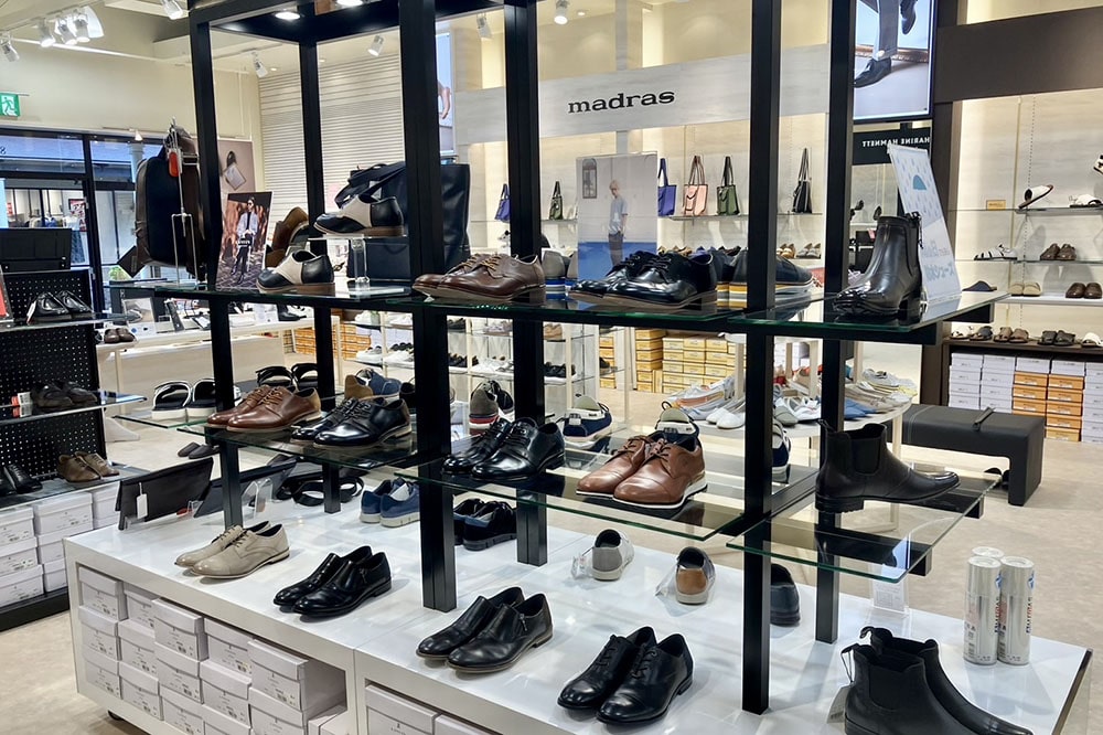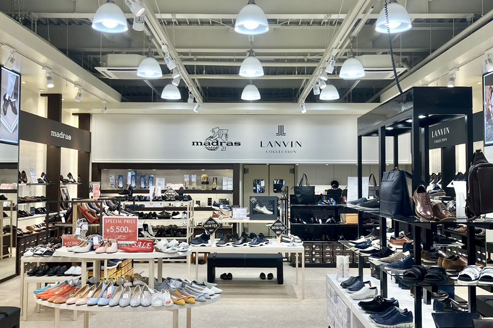 高品質で履き心地にこだわったマドラスの3ブランドはもちろん、キャサリンハムネットロンドン/ランバン コレクション/ランバン オン ブルーのメンズ、レディースの商品を取り揃えて、広くゆったりした店内で靴のセレクト、履き方のご相談をお受けして、お客さまにふさわしい1足をお探しします。