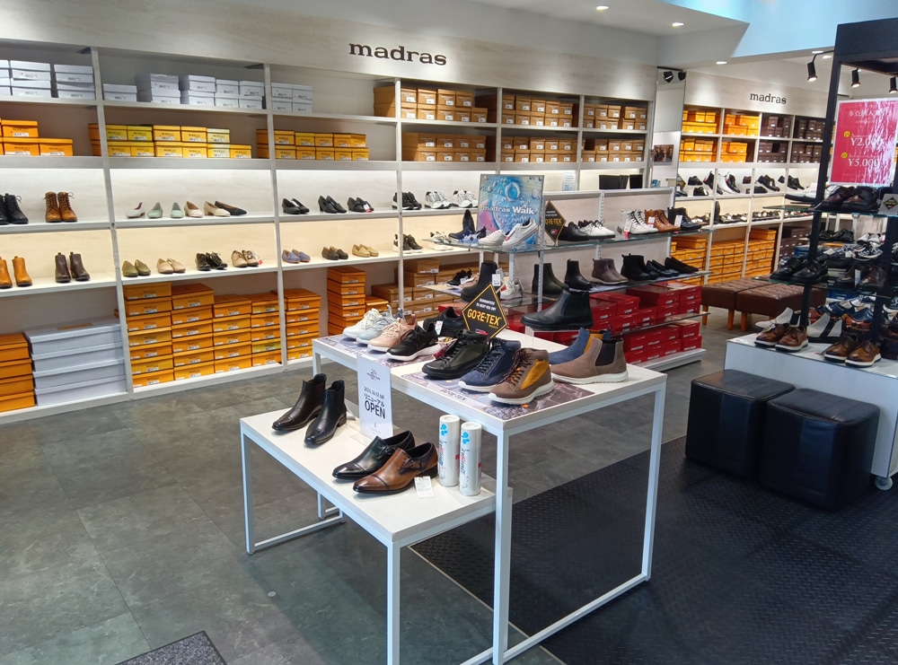 当店はmadras,MODELLO,madrasWalk,LANVINCOLLECTION,KATHARINEHAMNETTLONDONなど取幅広い商品を取り扱い、ドレスシューズからタウンユースのカジュアルシューズまで豊富なバリエーションをご用意いたしております。 この度、今まで無かったレディースの取り扱いも増えご夫婦などお連れ様とご一緒にお買い物をごゆっく楽しんで頂けます。