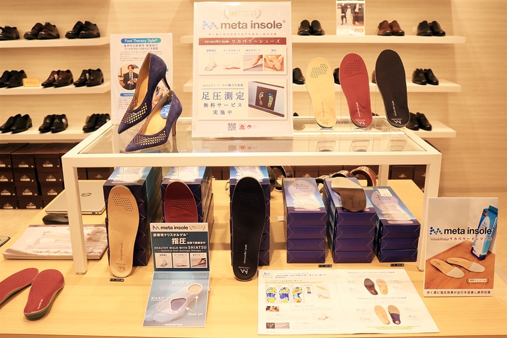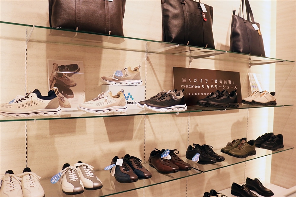 当店ではmadras、MODELLO、madras Walkといったマドラスブランドの紳士靴、婦人靴をはじめ、LANVIN COLLECTIONやLANVIN en Bleuなど広範囲に渡った品揃えをしております。また、履くだけで疲労回復する「metaインソール®」を搭載したmadrasリカバリーシューズもご用意致しております。