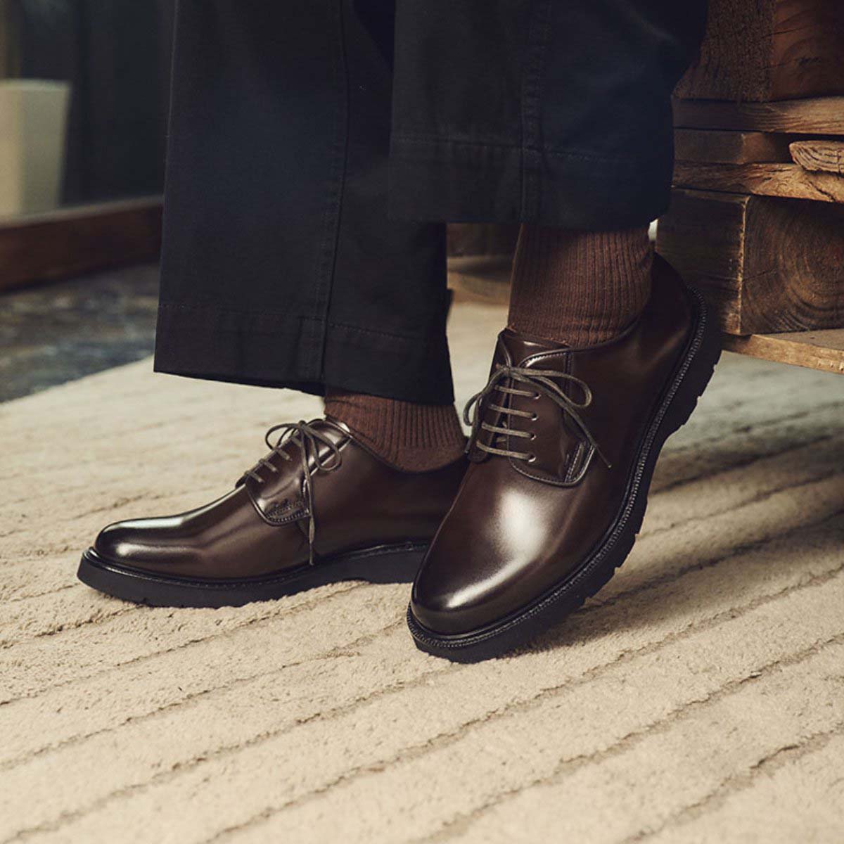 アッパーには光沢感が美しい牛革を使用しており、質感がよく品格溢れる仕上げ感になっております。