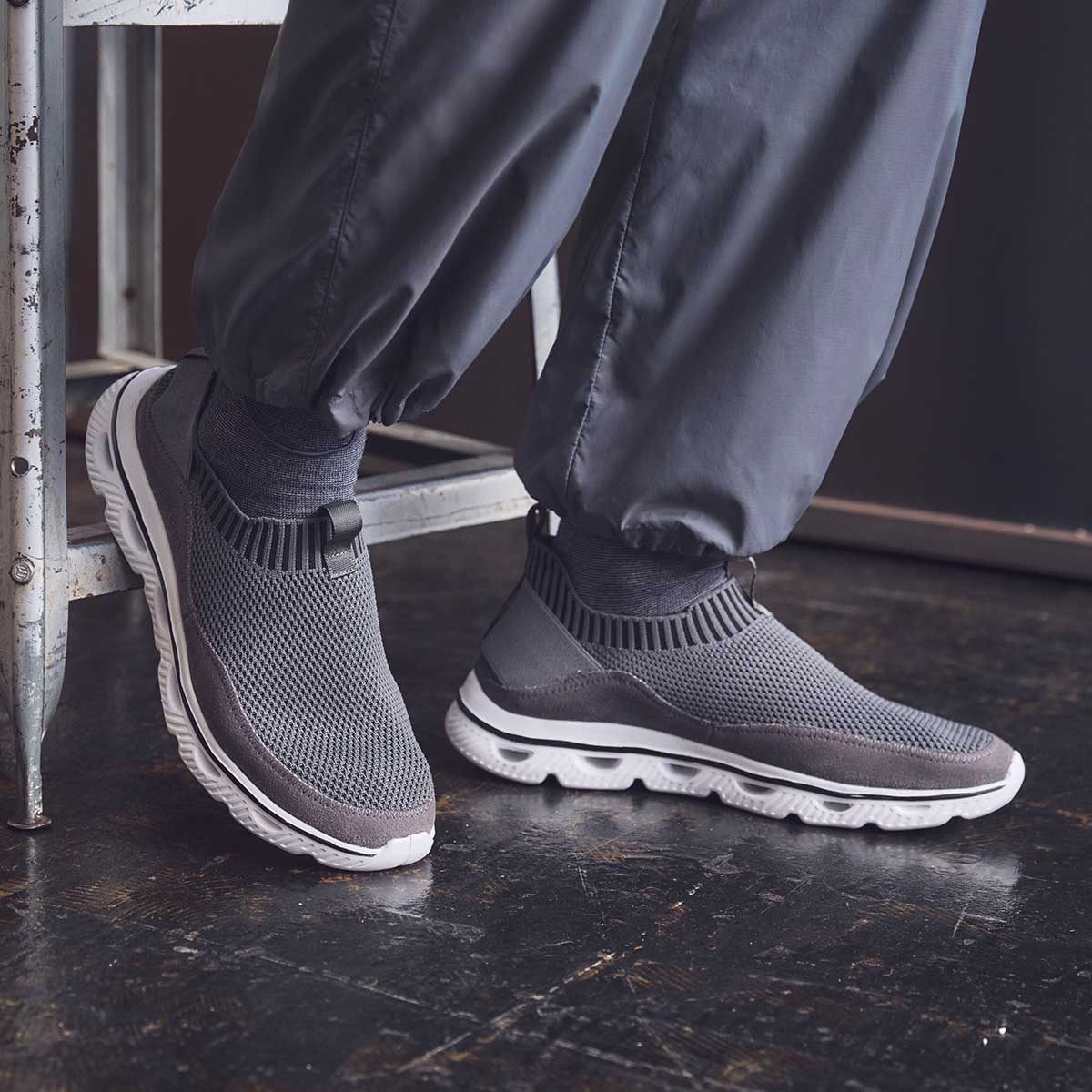 足をやさしく包み込むニットアッパーを採用した、ストレスフリーなスリッポンスニーカー。