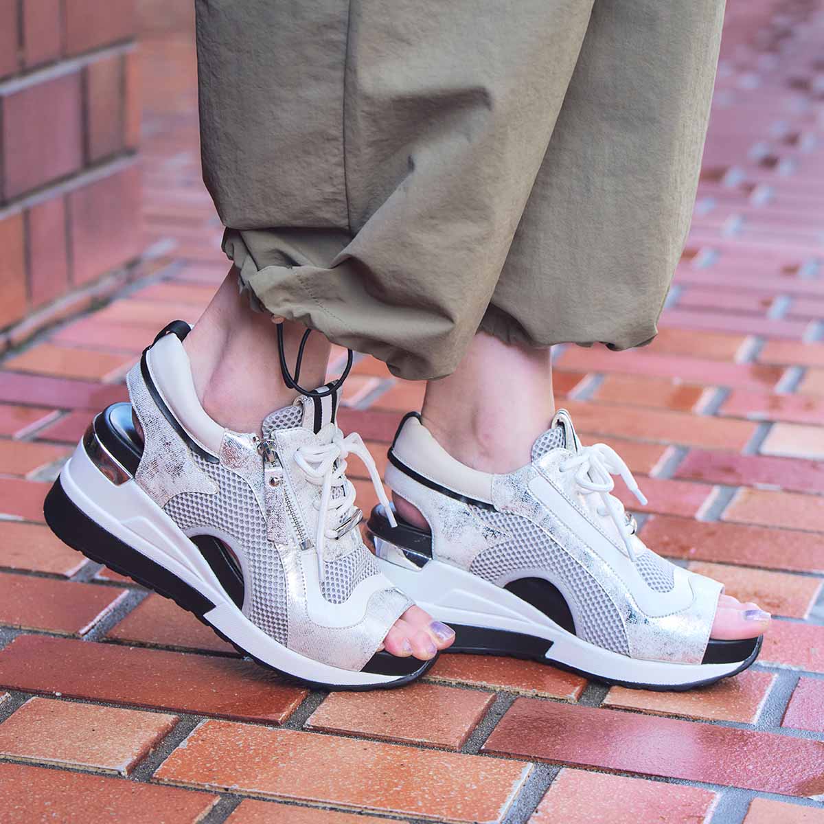 スタイルアップを叶える7cmヒールデザイン スニーカーの歩きやすさと、ヒールによる美脚効果を両立。 カジュアルになりすぎず、きれいめなスタイリングにもマッチする一足です。