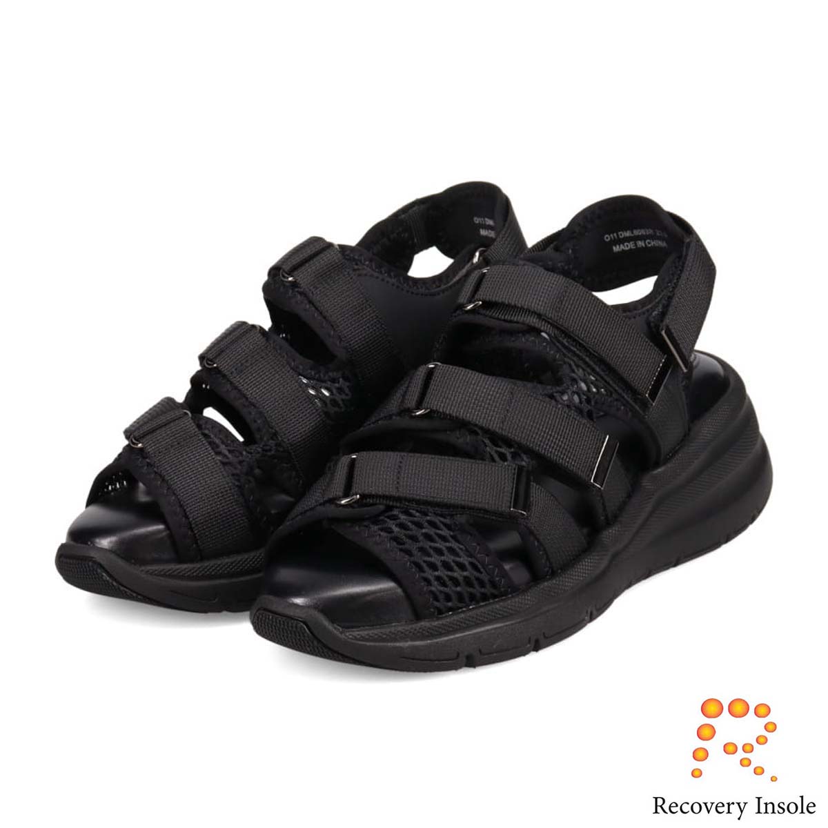 モデロ MODELLO 「リカバリーインソール」搭載で指圧効果により血行を115%促進。Recovery3本ベルトヒールアップスポーツサンダル DML6063R