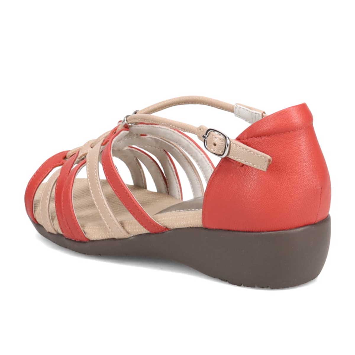 甲の2本ストラップの間に可動式の調節金具が付いており、より足にフィットするよう微調整が可能!深めのデザインは安定感をUPさせ、カカトを見せたくない方などにオススメなカカト付きデザインで足全体を支えるよう設計しています。