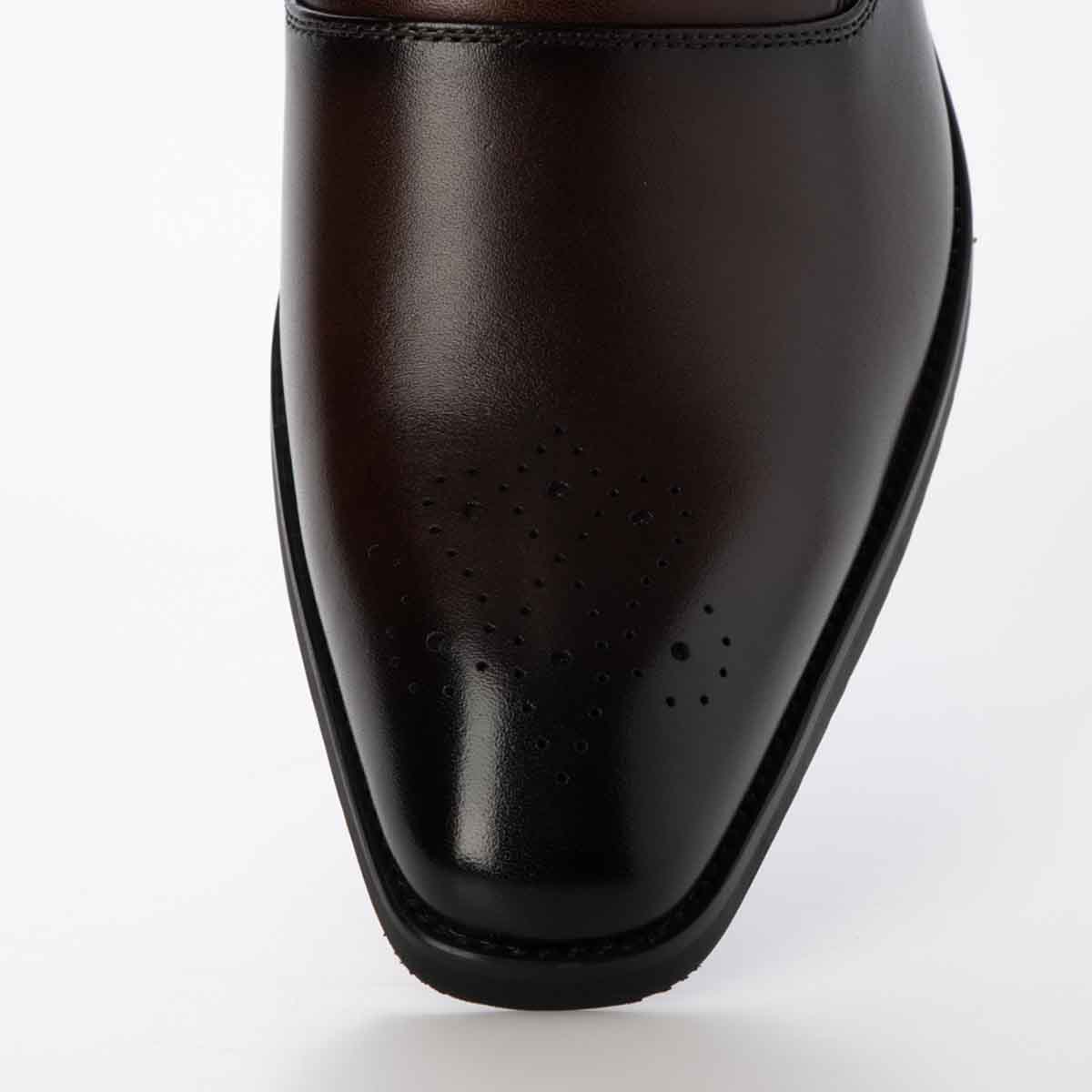 シャープに伸びたつま先が、すらりとした美脚効果を実現。計算されたラインがスーツの裾から覗くたび、都会的で知的な印象を与えます。